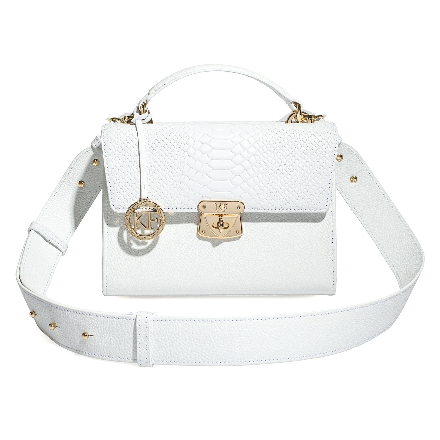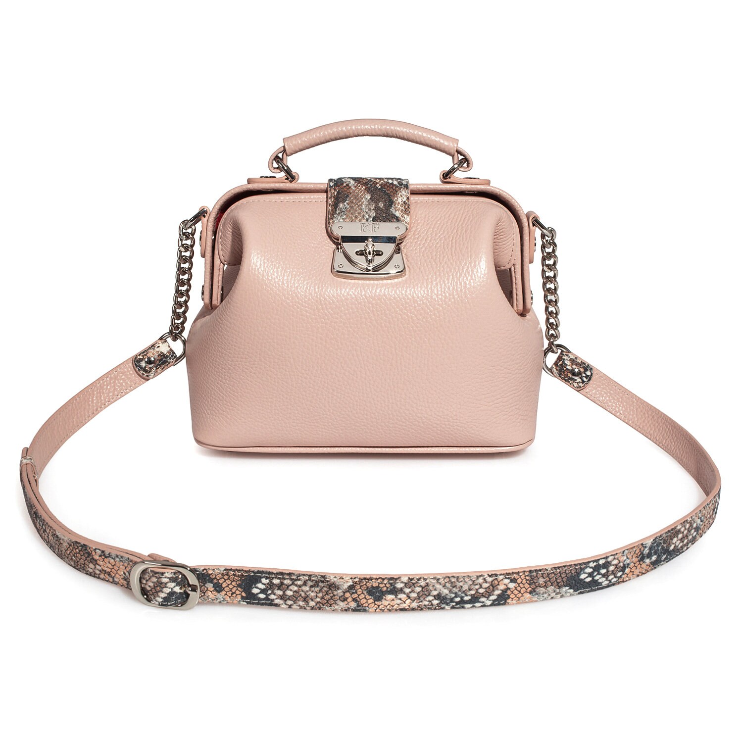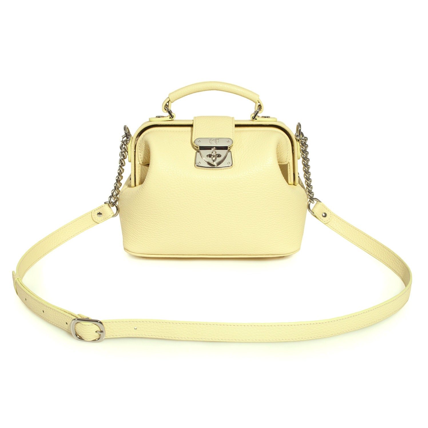 Mint genuine leather handbag from Ukrainian designer Katerina Fox. The internal space of a bag is equipped with three spacious compartments and two patch-pockets and one zipper pocket. One of the spacious compartments is closed with a zipper. The bag is closed with a clasp. The bottom of the bag is protected with metal legs. There is a long handle that allows you to wear the bag on the shoulder. The kit also includes a storage bag.