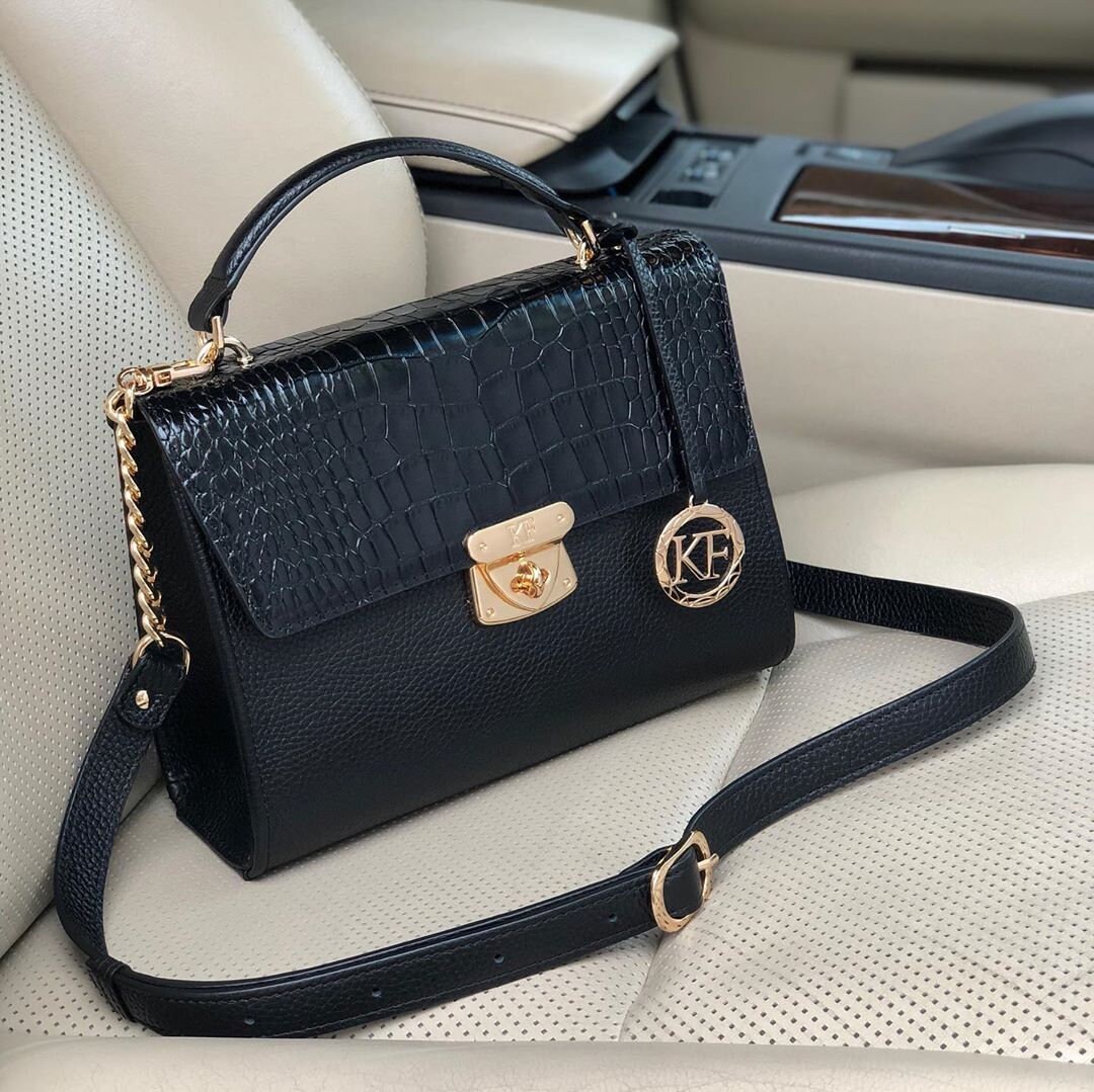 Black/Green genuine leather handbag from ukrainian designer Katerina Fox. This model is designed for women who appreciate the sleek design combined with functionality and comfort. High-quality and reliable hardware ensure long service bags. The internal space of a bag is equipped with one spacious compartment and two patch-pockets and one zipper pocket. The bag is closed with a zipper. The bottom of the bag is protected with metal legs. There is a long handle that allows you to wear the bag on the shoulder. The kit also includes a storage bag.