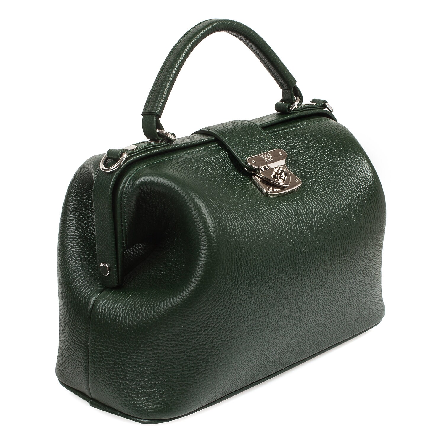 Women's leather bag made of genuine leather, hardware with galvanic coating and microfiber lining. The internal space of a bag is equipped with three compartments, one compartment and two side pockets, one with a zipper. §³loses with 3 magnet buttons. The bottom of the bag is protected with metal legs. There is a long handle that allows you to wear the bag on the shoulder. The kit also includes a storage bag.