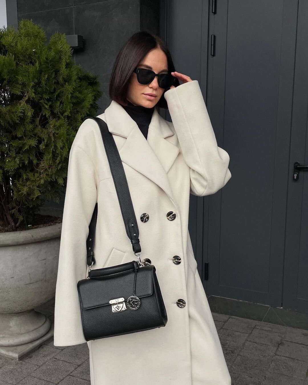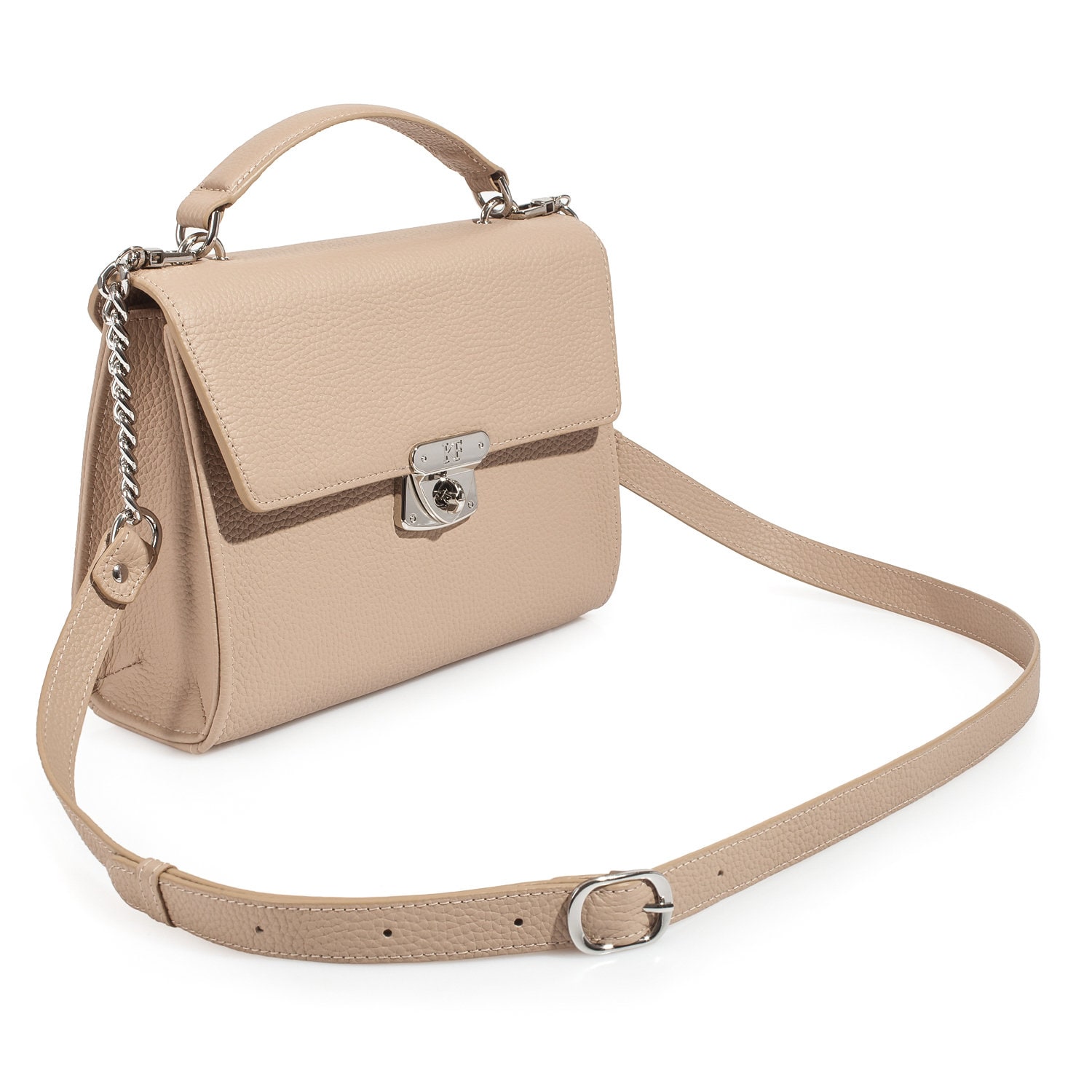 Leather Top Handle Bag, Grey Beige Leather Handbag Top Handle, Women's Leather Bag KF-3087