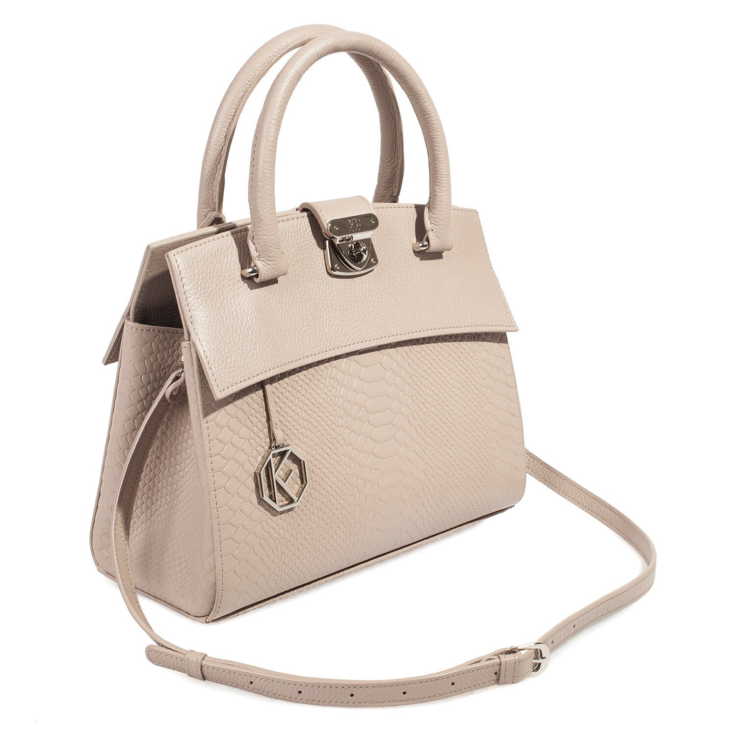 Leather Top Handle Bag, Gray Beige Leather Handbag Top Handle, Women's Leather Bag KF-2701