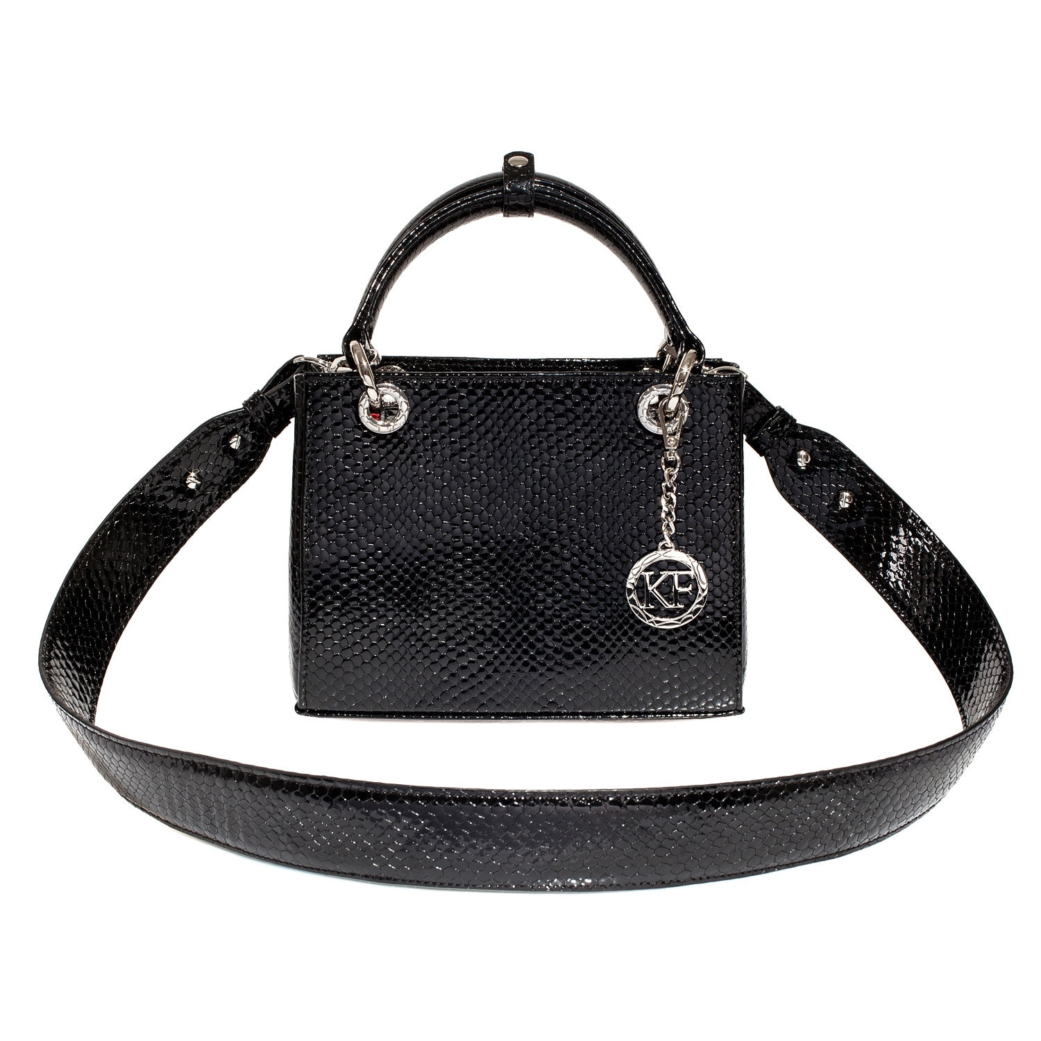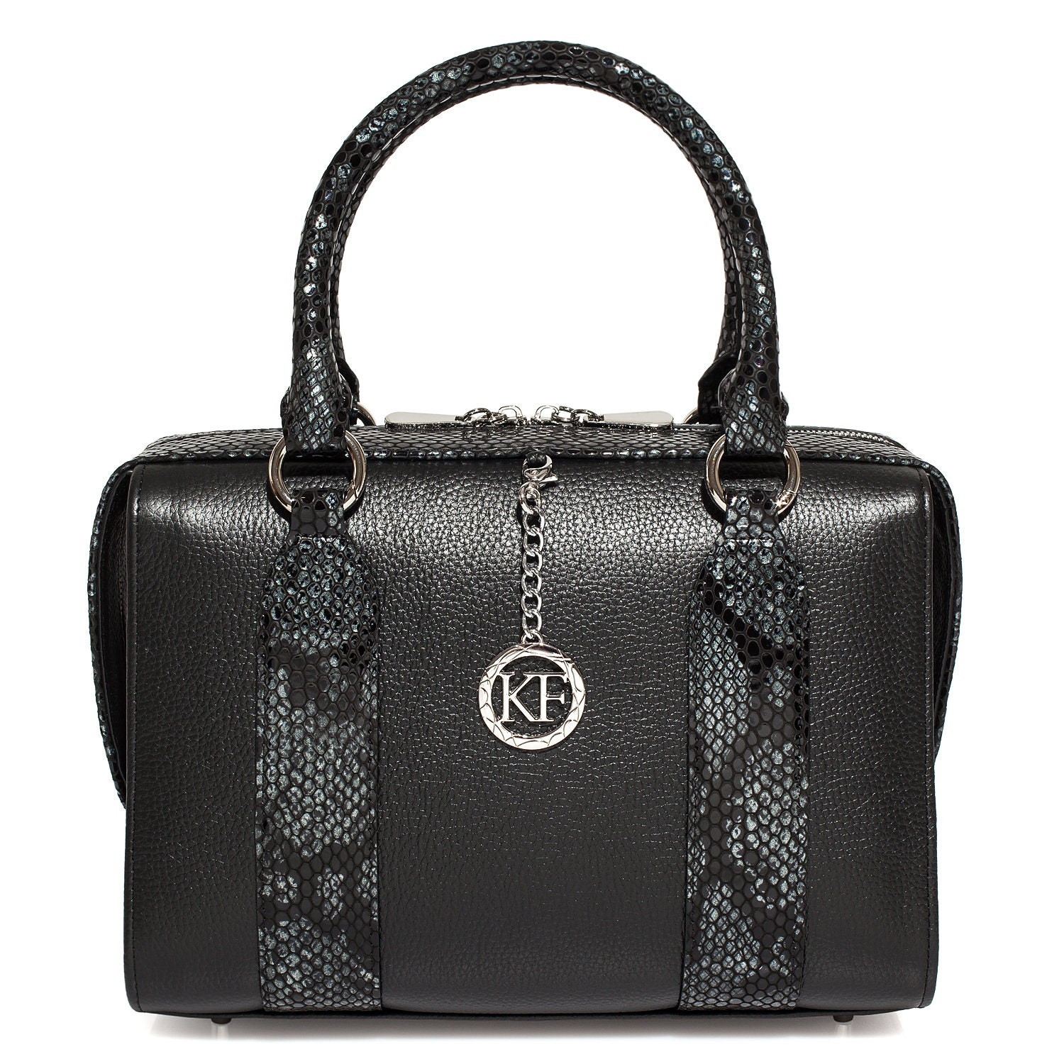 Leather Top Handle Bag, Black Leather Handbag Top Handle, Women's Leather Bag KF-3862