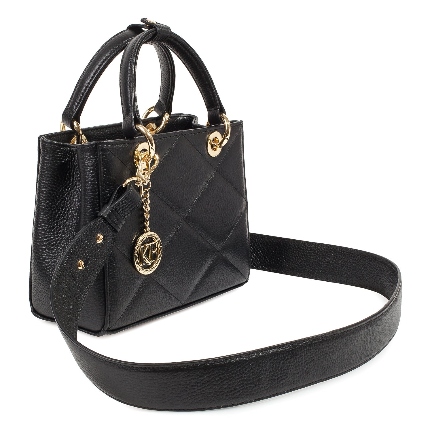 Leather Top Handle Bag, Black Leather Handbag Top Handle, Women's Leather Bag KF-3879