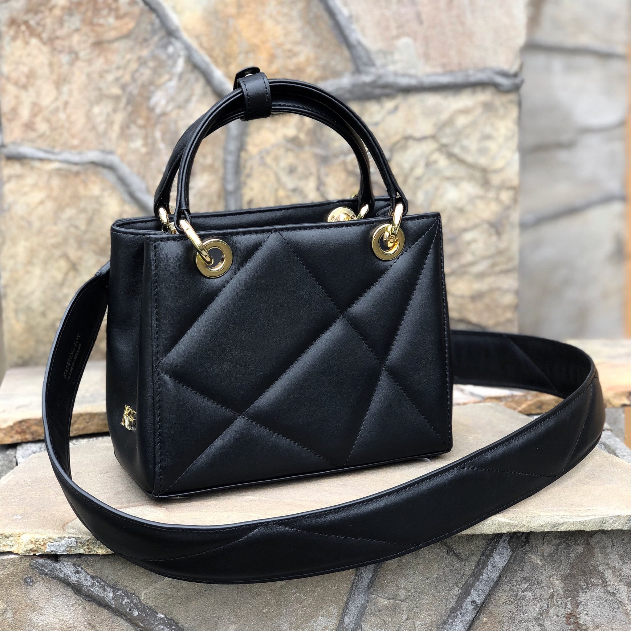 Leather Top Handle Bag, Black Leather Handbag Top Handle, Women's Leather Bag KF-3940