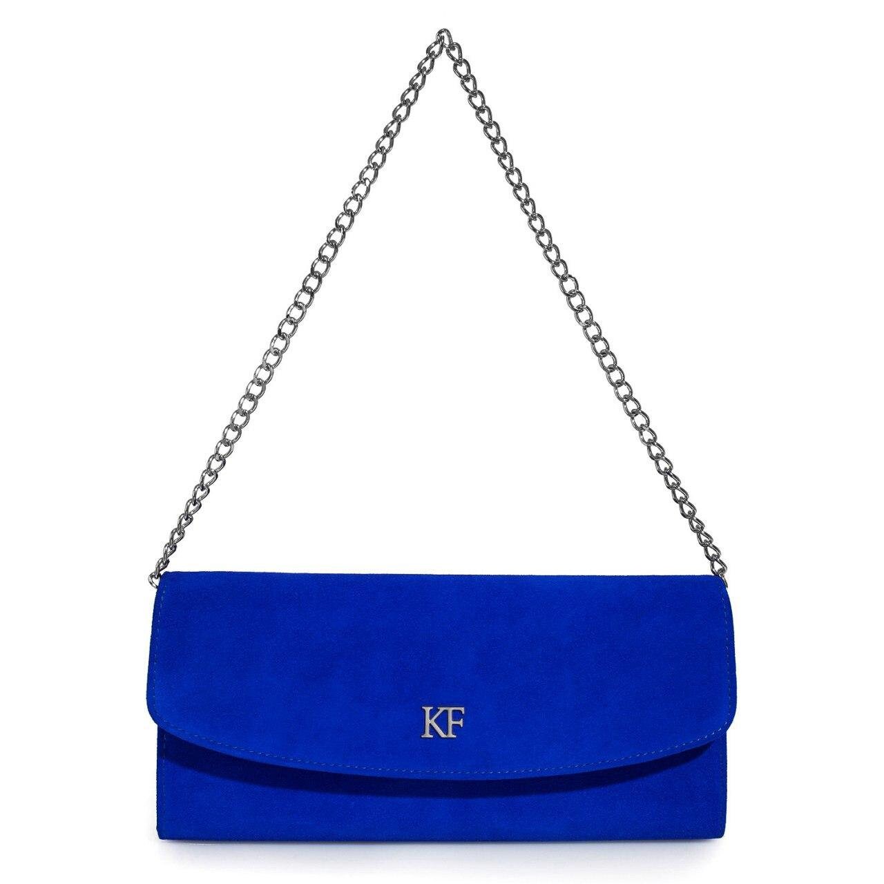 Leather Clutch, Suede Leather Clutch Bag Purse, Blue Leather Clutch KF-3215