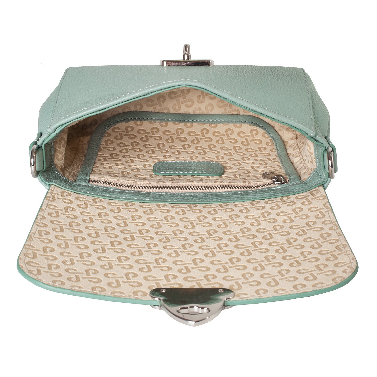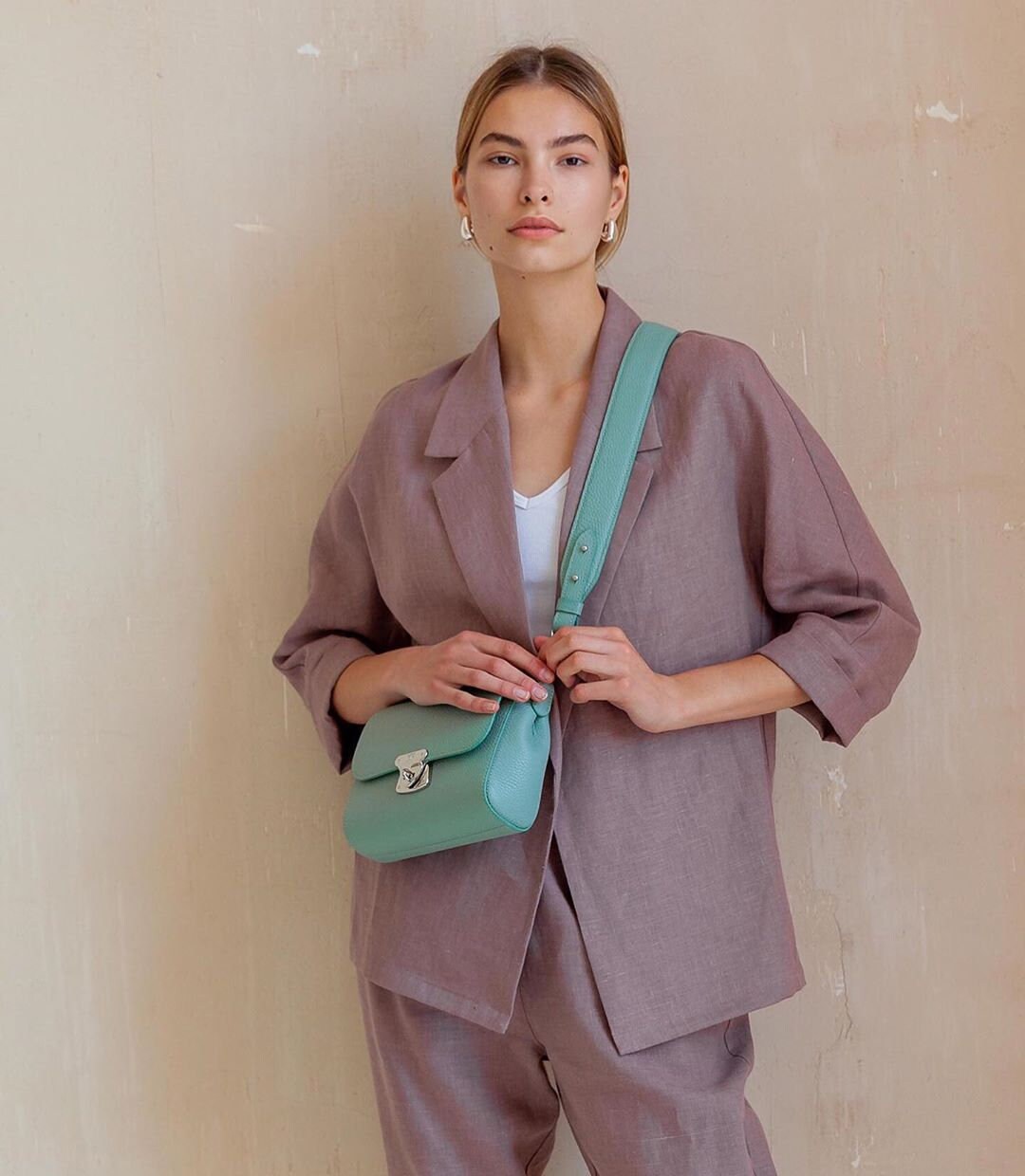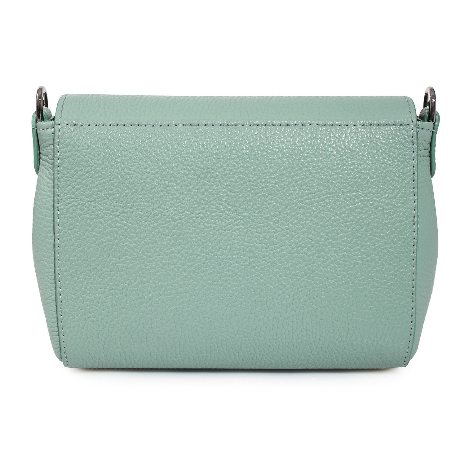Mint genuine leather woman shoulder bag from ukrainian designer Katerina Fox. Fashionable and elegant modern bag KF for bright girls and women. This bag is able to attract attention and highlight your exquisite taste. Inside the bag is one large compartment and a convenient zippered pocket for small items, closes the bag on the clasp. The bag is comfortable to wear on the shoulder or across the shoulder.