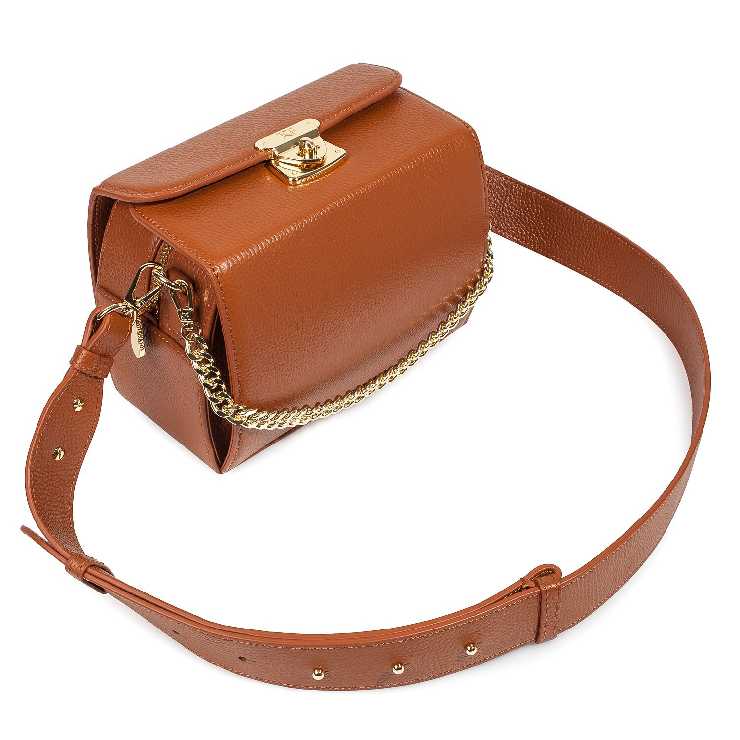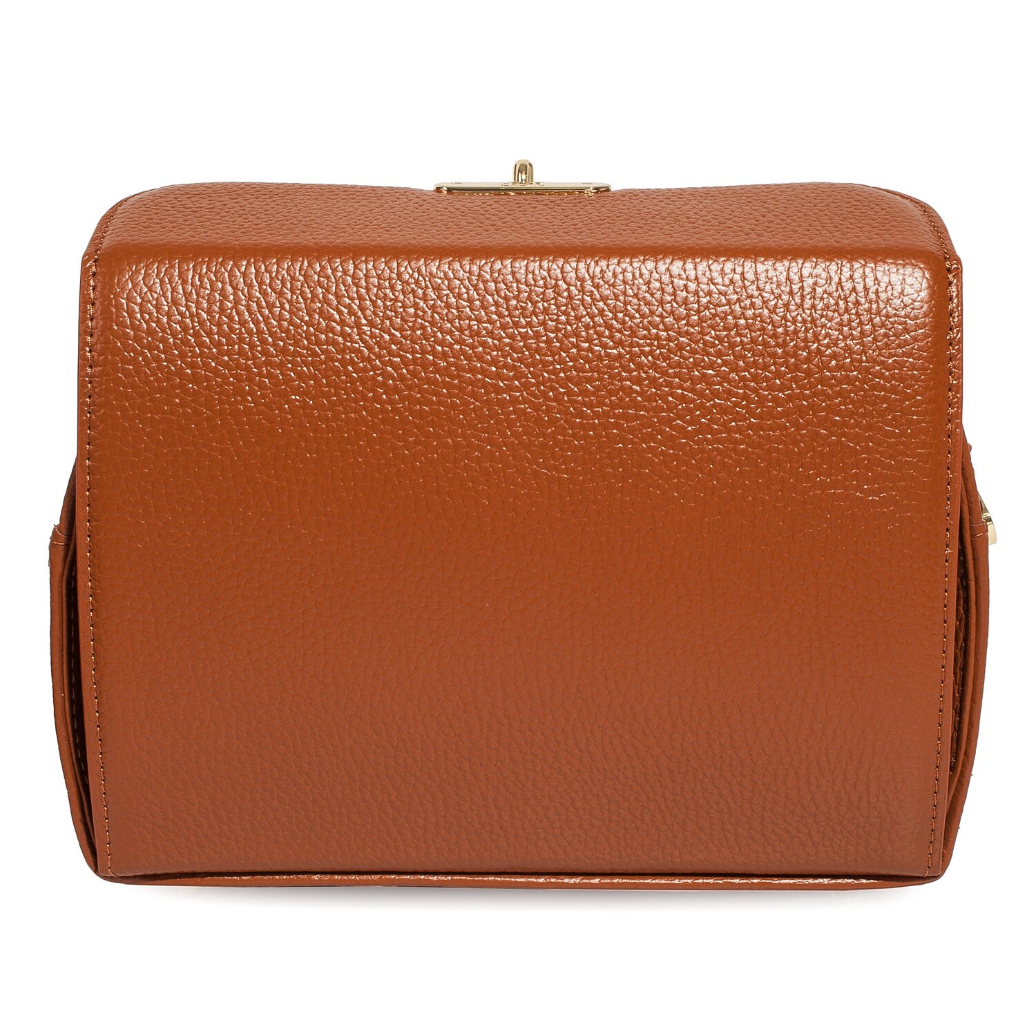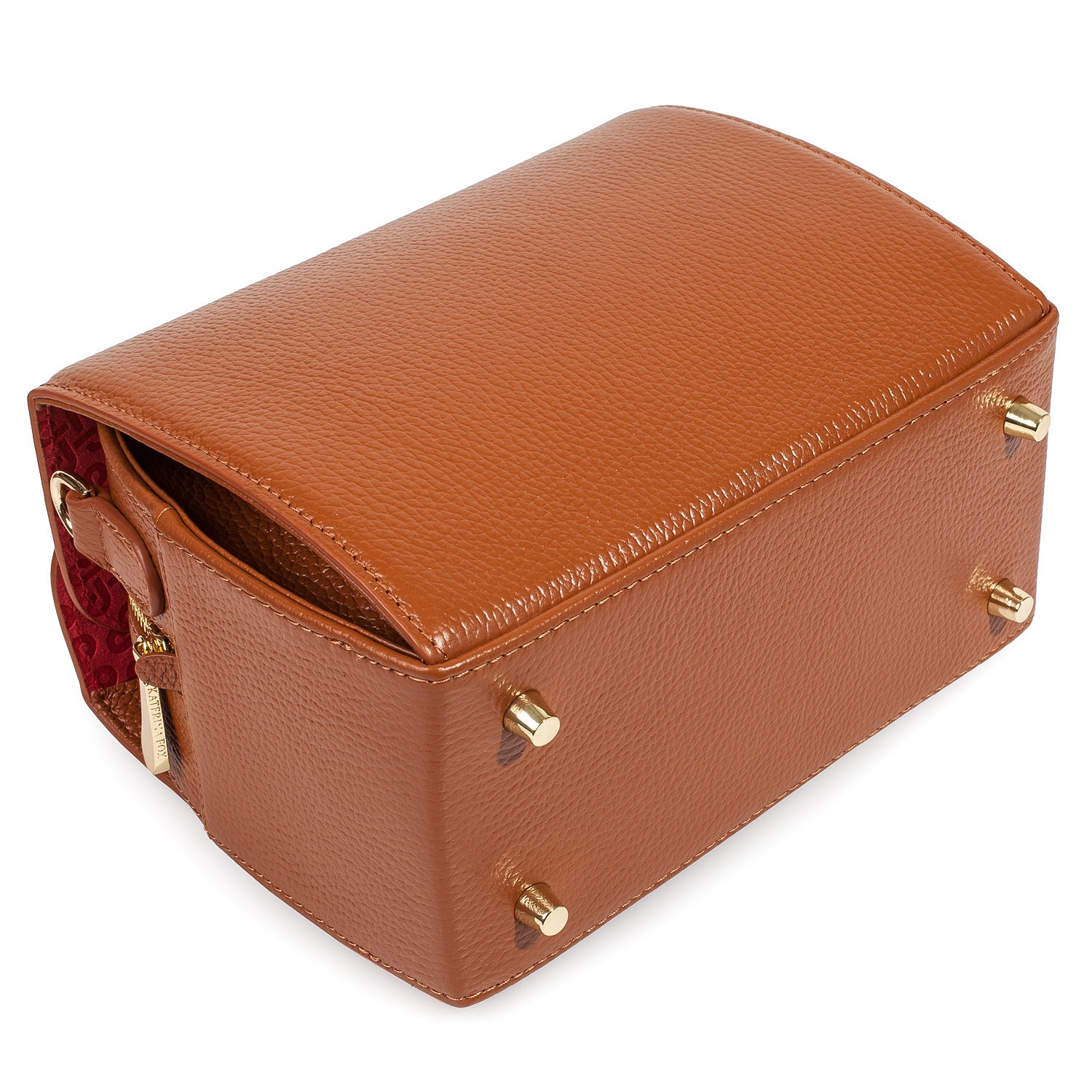 Ginger genuine leather handbag from Ukrainian designer Katerina Fox. This model is designed for women who appreciate the sleek design combined with functionality and comfort. High-quality and reliable hardware ensures long service bags. The internal space of a bag is equipped with three spacious compartments and one patch pocket. The bag is closed with a clasp. The bottom of the bag is protected with metal legs. There is a long handle that allows you to wear the bag on the shoulder. The kit also includes a storage bag.