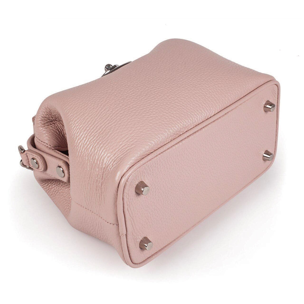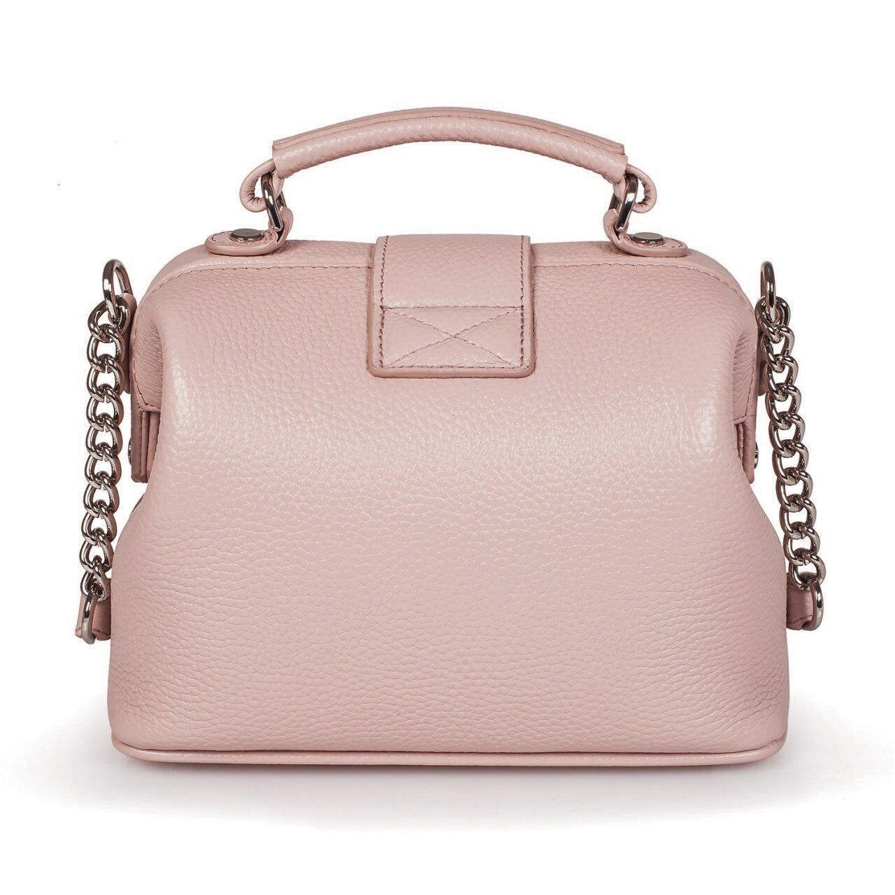 Beige (powder) genuine leather handbag from ukrainian designer Katerina Fox. This model is designed for women who appreciate the sleek design combined with functionality and comfort. High-quality and reliable hardware ensure long service bags. The internal space of a bag is equipped with one spacious compartment and two patch-pockets and one zipper pocket. The bag is closed with a clasp. The bottom of the bag is protected with metal legs. There is a long handle that allows you to wear the bag on the shoulder. The kit also includes a storage bag.