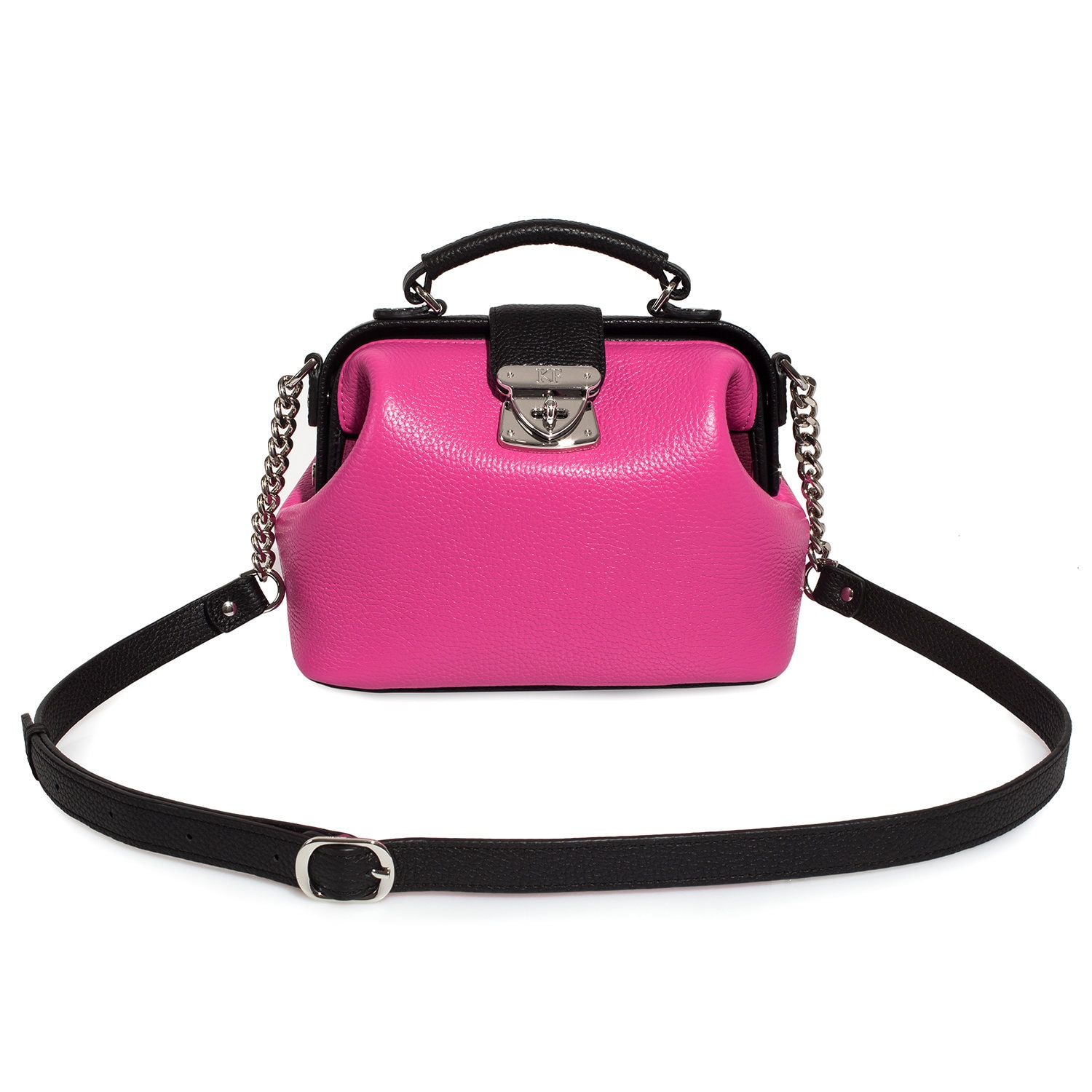 Women's leather doctor bag made of genuine leather, hardware with galvanic coating and microfiber lining. The internal space of a bag is equipped with one spacious compartment, one patch-pocket and one zipper pocket. The bag is closed with a clasp. The kit also includes a storage bag.