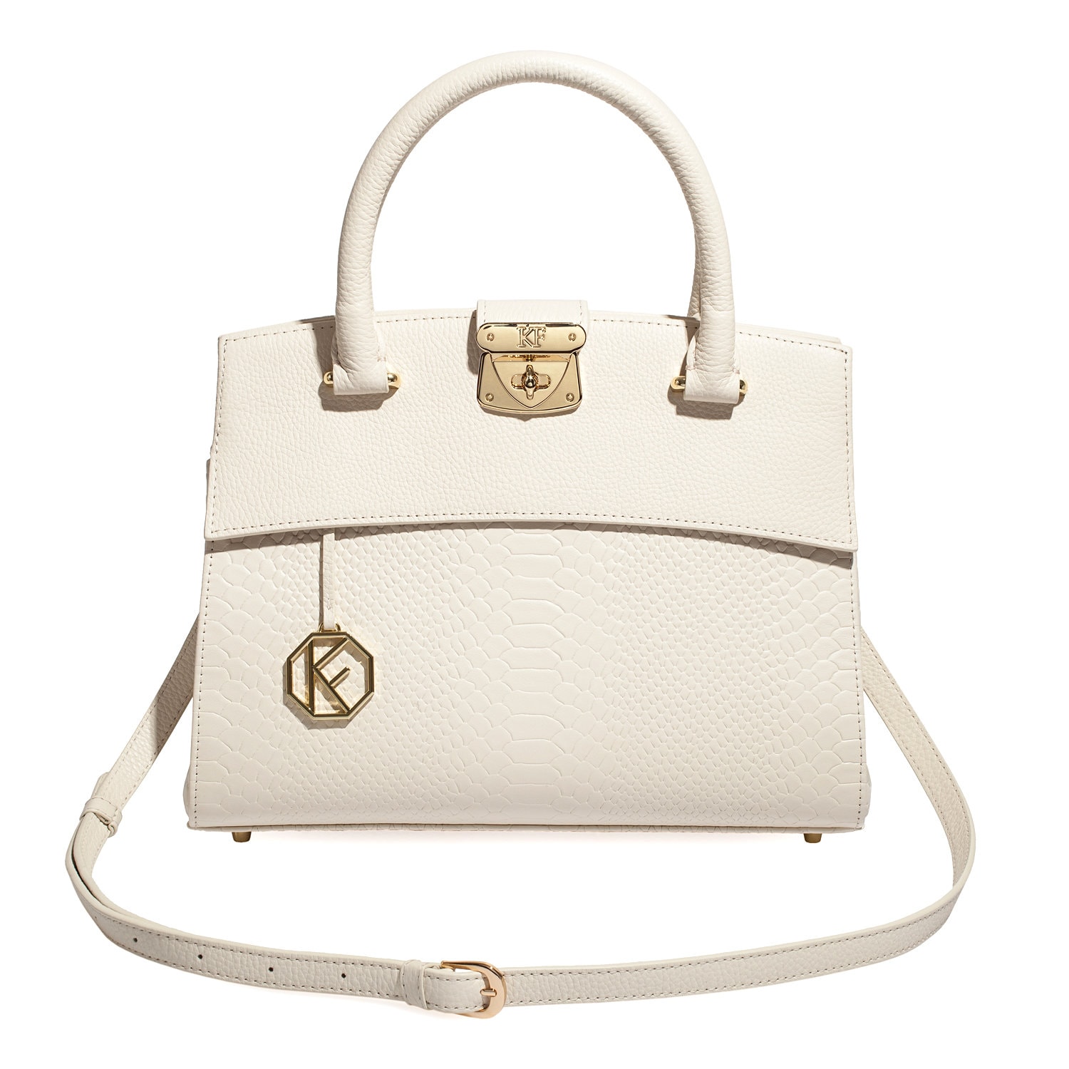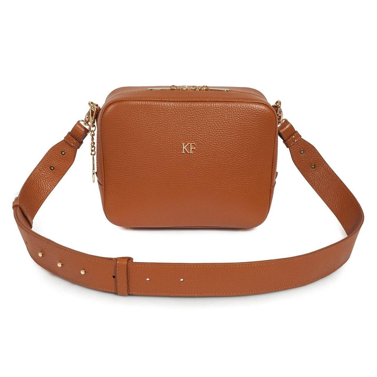 Women's leather bag made of genuine leather, hardware with galvanic coating and microfiber lining. The internal space of a bag is equipped with three compartments, one compartment and two side pockets, one with a zipper. §³loses with 3 magnet buttons. The bottom of the bag is protected with metal legs. There is a long handle that allows you to wear the bag on the shoulder. The kit also includes a storage bag.